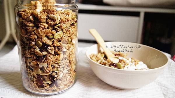 這個是我以前在澳洲常常拿來當早餐,點心,零食的食物。不管是和咖啡一起吃,或是像市售的XX氏穀類產品一樣加進牛奶裡,更或者是拌進優格裡和著一起吃,都是很搭配。話說我總是覺得買現成的Granola,價格都不便宜(價格對我來說實在是很重要|( ̄3 ̄)|)。所以呢,小姐前幾日做優格的時候也說了,要做一些其他的食物來搭配優格,當然!! Granola就是眾多的選擇之一,這個高纖營養有著多種堅果類的小零嘴做法並不難,只要做好裝進保鮮罐裡,放個三週都不是問題,完全方便到成為肚子餓時隱藏在身邊的健康小點心。For example:就像我昨天晚上肚子餓的時候就把它拿來當宵夜,吃完也不會有什麼罪惡感(羞愧地逃跑~~~~XD)。